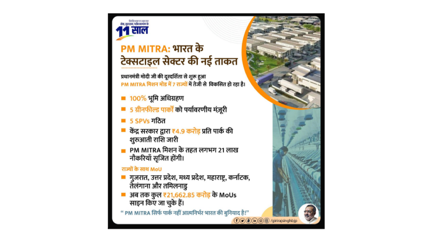 Each milestone at PM MITRA Parks strengthens India’s vision of building globally competitive textile manufacturing hubs — from fibre to finished products.