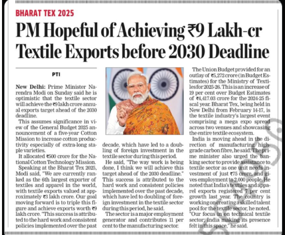 Under PM Modi's visionary leadership, India's textile sector is set to surpass its ₹9 lakh cr export target well before 2030
