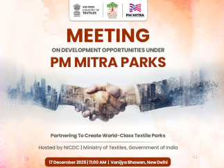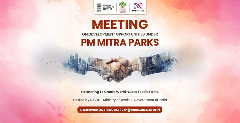 NICDC, on behalf of the Ministry of Textiles, is organising a Stakeholder Consultation Meeting on 17 December 2025 at 11:00 AM at Vanijya Bhawan, New Delhi, to explore partnership opportunities with prospective Master Developers under the PM MITRA scheme.