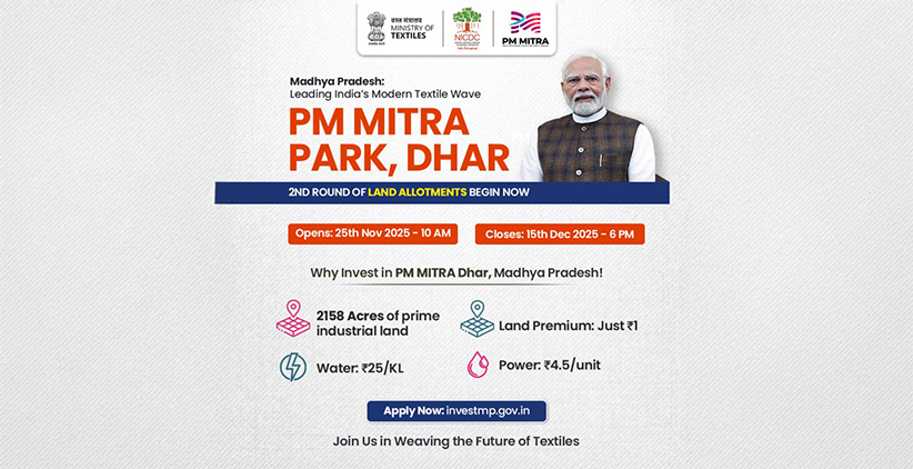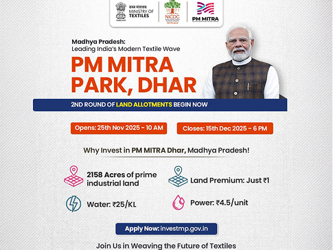 Land allotment applications for the Second Round at PM MITRA park, Dhar (MP) are currently live, with the window closing soon.
