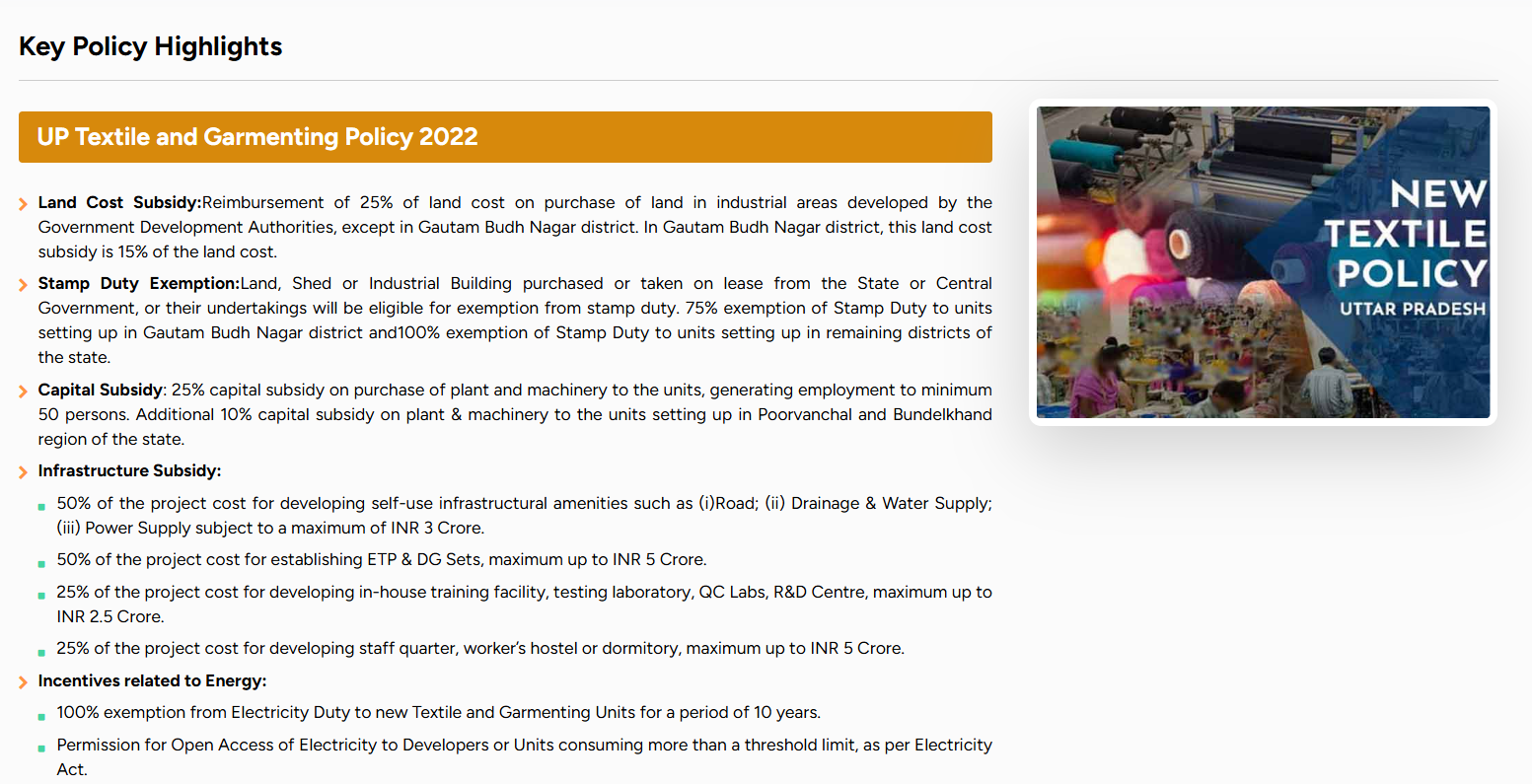 लखनऊ, यूपी में 1,000 एकड़ का पीएम मित्र पार्क है, जहाँ कपास की सप्लाई, मज़बूत इंडस्ट्री और बेहतरीन कनेक्टिविटी है।